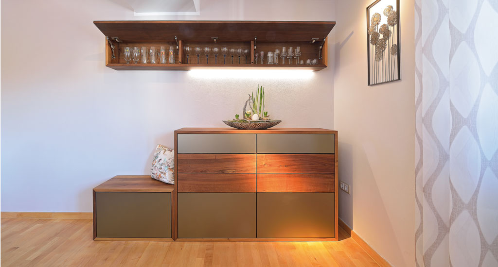 Die konsequente Ausnutzung des vorhandenen Raumes geht hier mit der klaren und modernen Linienführung eine gelungene Symbiose ein.