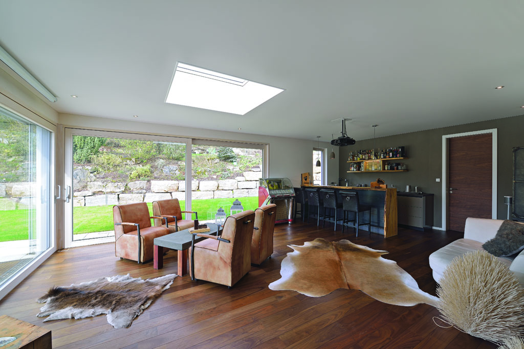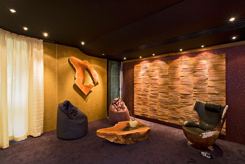Eine Luxusausführung für Audiophile und Qualitätsbewusste mit wenig Lust auf Kompromisse. Das stimmige Material- und Farbkonzept, die flexible Lichtplanung, die Schalldecke und hochwertigste HiFi-Technik verschmelzen zum Ort für bewusst ungestörten Mediengenuss.